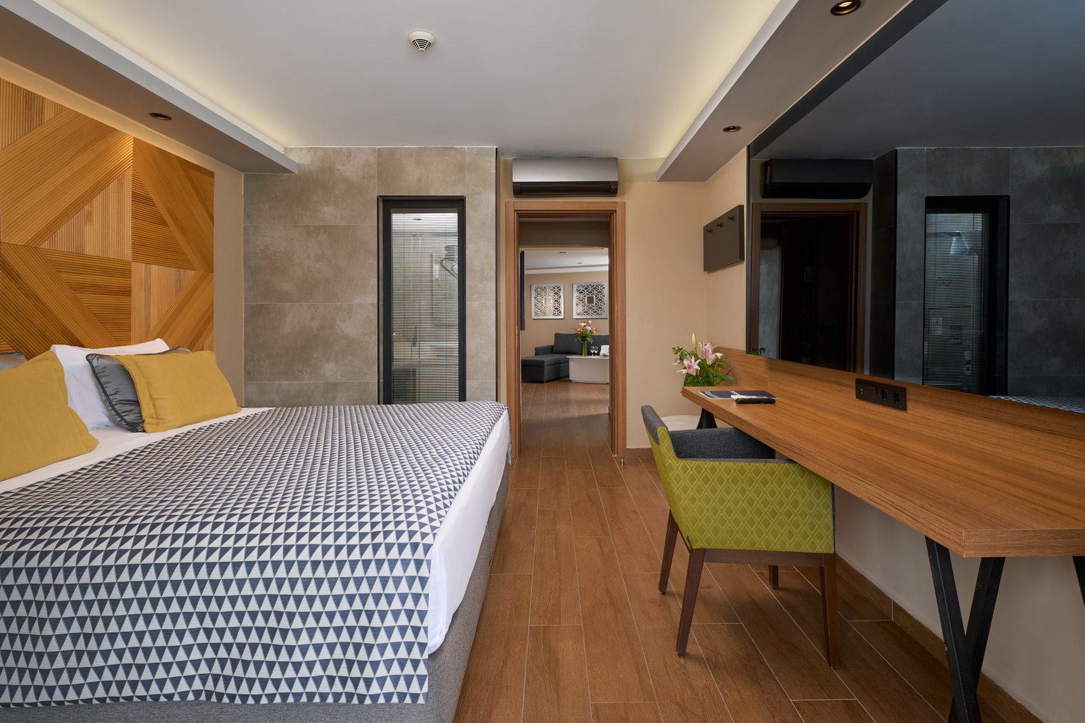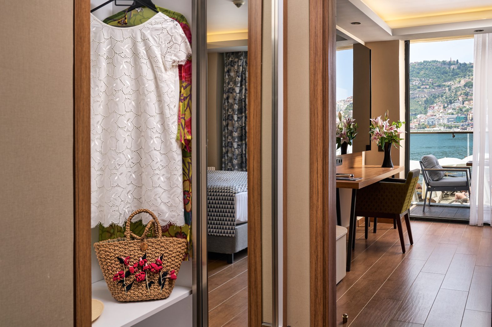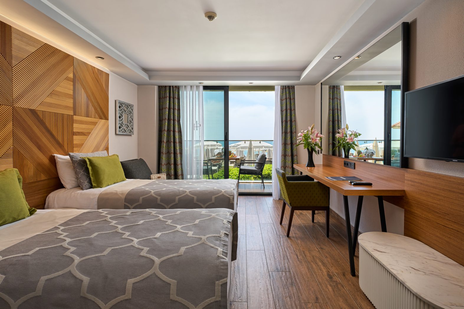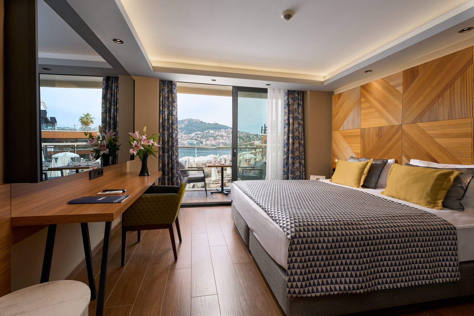 Modern tasarımı ve denize sınıf konumu ile özel bir tatil geçirebileceğiniz odalarımızda konforunuzu sağlamak için tüm ayrıntılar düşünüldü.