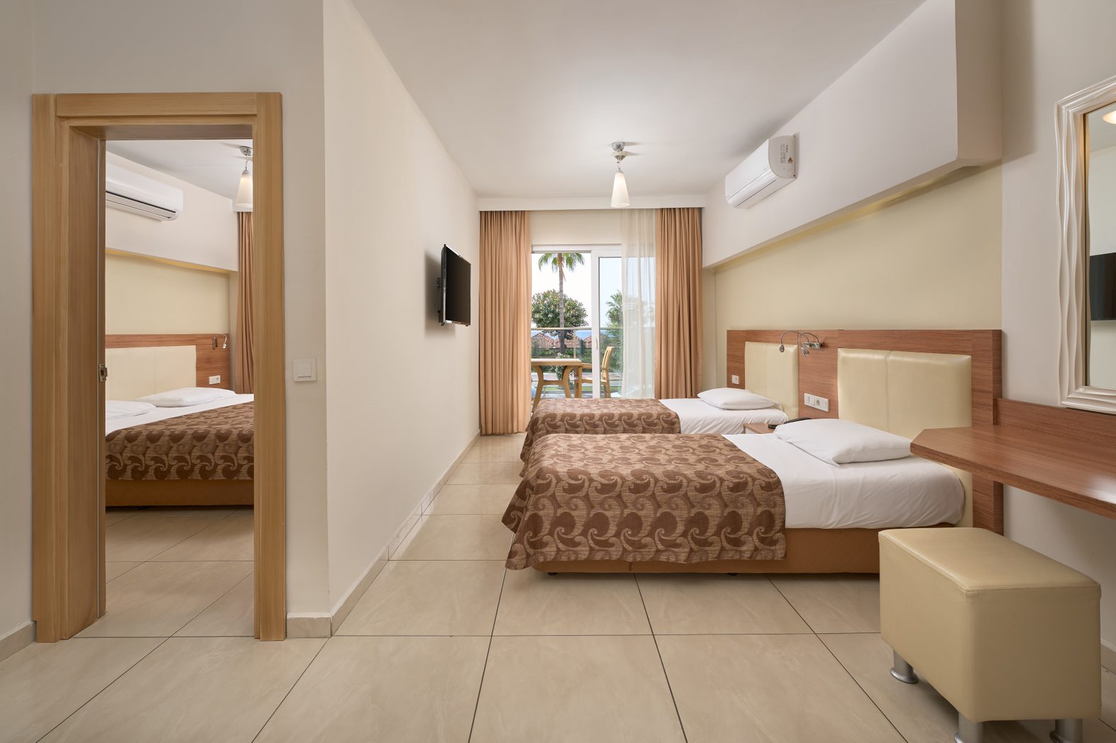 İki yatak odasından oluşan aile odalarımızda çocuklarınız ile bir arada tatil yapmanın tadını çıkaracaksınız.